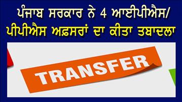 ਪੰਜਾਬ ਸਰਕਾਰ ਨੇ 4 ਆਈਪੀਐਸ/ਪੀਪੀਐਸ ਅਫ਼ਸਰਾਂ ਦਾ ਕੀਤਾ ਤਬਾਦਲਾ