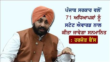 ਪੰਜਾਬ ਸਰਕਾਰ ਵਲੋਂ 71 ਅਧਿਆਪਕਾਂ ਨੂੰ ਸਟੇਟ ਐਵਾਰਡ ਨਾਲ ਕੀਤਾ ਜਾਵੇਗਾ ਸਨਮਾਨਿਤ : ਹਰਜੋਤ ਬੈਂਸ