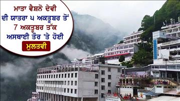 ਮਾਤਾ ਵੈਸ਼ਨੋ ਦੇਵੀ ਦੀ ਯਾਤਰਾ 5 ਅਕਤੂਬਰ ਤੋਂ 7 ਅਕਤੂਬਰ ਤੱਕ ਅਸਥਾਈ ਤੌਰ 'ਤੇ ਹੋਈ ਮੁਲਤਵੀ